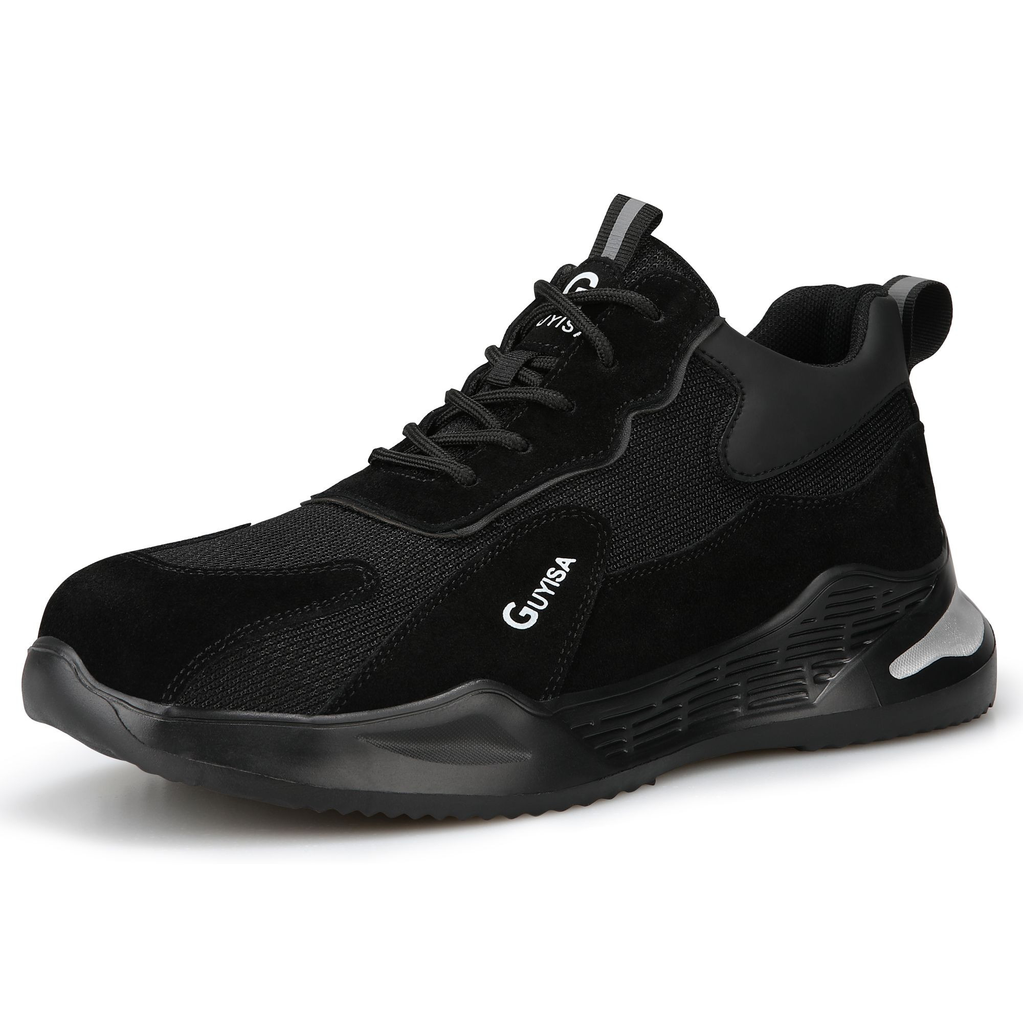 GUYISA Men Black Lightweight Safety Shoes Steel Toe Sneakers Without Laces For Women